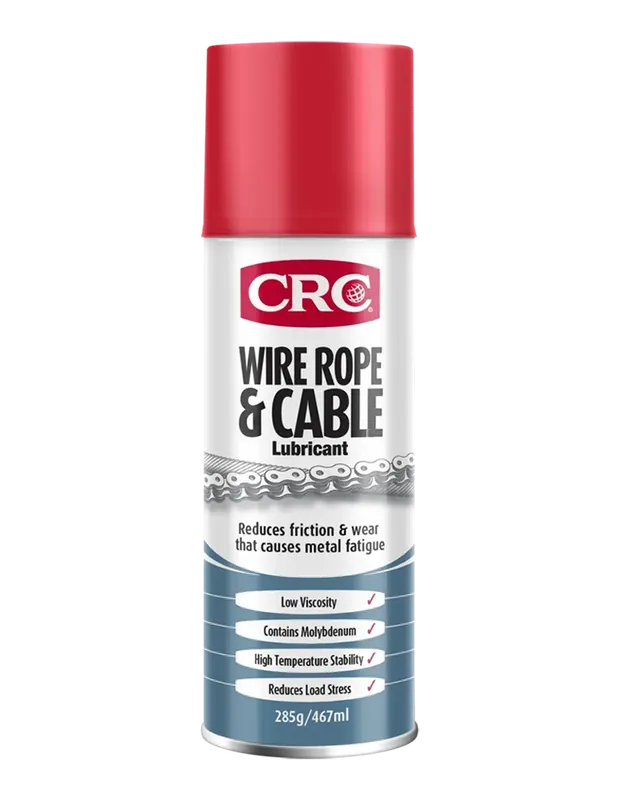 CRC Wire Rope and Cable Lubricant is a special blend of synthetic lubricants, solvents and Molybdenum designed to keep chains and wire rope in peak operating condition. With a low viscosity and wet film, CRC Wire Rope and Cable Lubricant penetrates deeply between chain links and wire strands to reduce friction and wear that cause metal fatigue. CRC Wire Rope and Cable Lubricant also contains a tackifier that enables the lubricant to cling tenaciously to metal surfaces without increasing the viscosity. Regular use of CRC Wire Rope and Cable Lubricant will help inhibit corrosion, reduce load stress and prevent wire strands from becoming brittle and fraying.