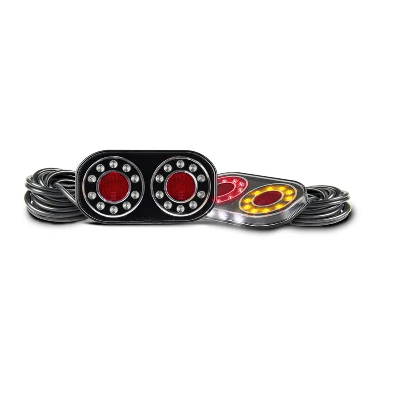 Boat trailer lamp and 8 metre cable kit, stop/tail/indicator/reflector/licence, 210mm x 110mm x 22mm, 12 volt only, ADR approved, bolt surface mount, stainless steel fittings, 8m cable with plug, harness system compatible, IP67 ingress protection rating, fully submersible, 5 year warranty, sold as a set (left and right) in retail packaging (blister pack)