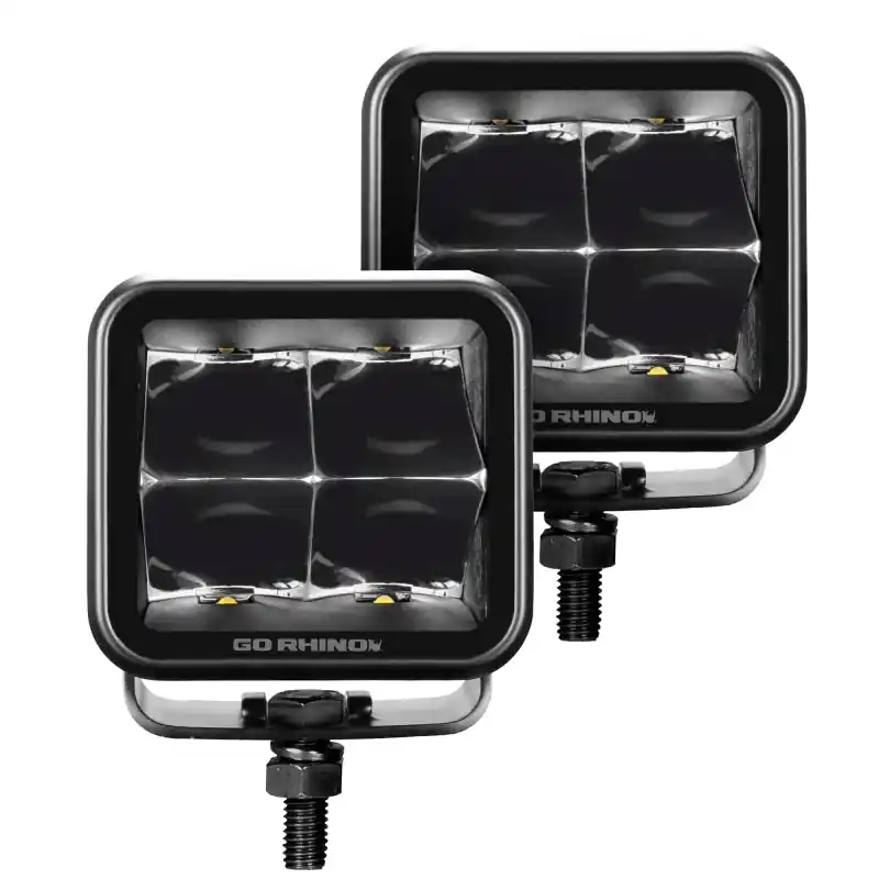 Grab Now Go Rhino Xplor Blackout Series Cube LED Spot Light Kit (Surface/Threaded Stud Mnt) 3×3 – Blk (Pair)