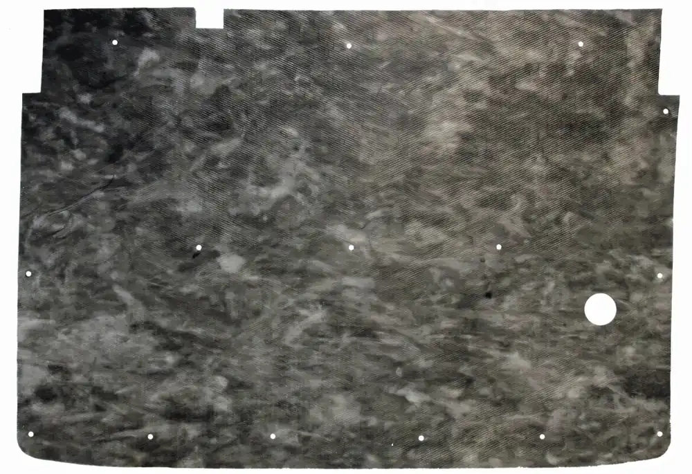 A hood insulation pad heat shield is an under-hood insulating layer designed to reduce engine heat and noise from transferring into the passenger compartment. It also helps protect hood paint and metal from heat damage.