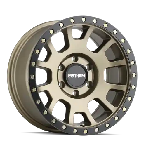 Mayhem 8302 Scout 17×8.5 / 5×127 BP / 0mm Offset / 78.1mm Hub Matte Gold w/ Matte Black Lip Wheel Certified
