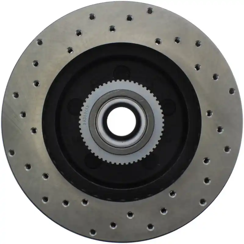StopTech Drilled Sport Rotors are 1-piece direct replacement brake discs for factory brake systems and stock calipers that look great behind your wheels – and offer significantly improved braking performance. The unique cross-drilling aids with heat and brake dust dispersal; prevents glazing of the pads; adds bite and improves wet and dry braking performance. Built to last; the black e-coating provides protection from corrosion and the high carbon metallurgy (in most applications) offers quieter operation; better crack resistance and increased performance.