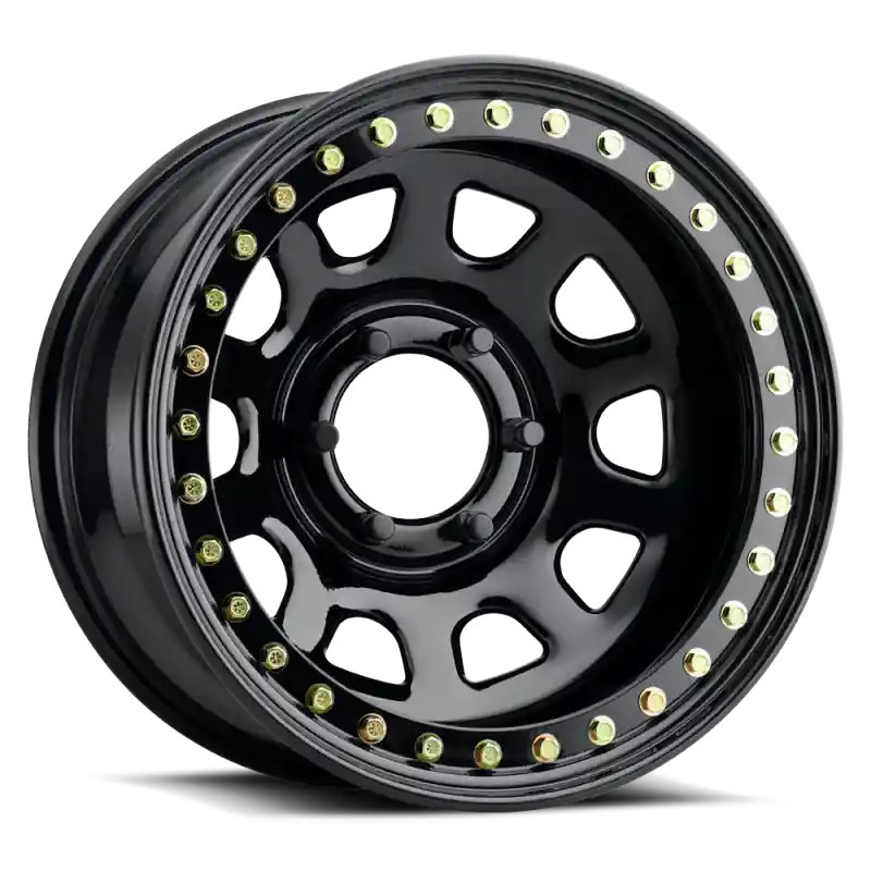 Raceline RT51 Daytona Rock 15x8in/6×139.7 BP/-19mm Offset/107.95mm Bore – Gloss Black Beadlock Wheel