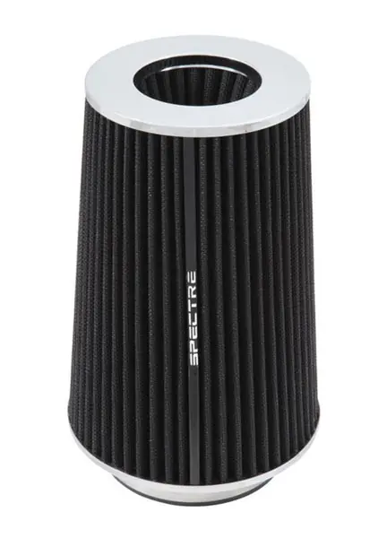 This Spectre High Performance Racing (HPR) Air Filter is a black media clamp-on cone filter that can be used for a wide variety of applications. Using the included adapter rings, this filter can fit 3 inch, 3-1/2 inch, and 4 inch diameter tubes. Manufactured using high quality materials throughout, including oiled synthetic media, urethane, and steel mesh, this washable performance filter is precision engineered for low restriction and better performance. This filter’s top houses an inverted cone filter for improved service life and enhanced flow potential. Designed with a triple chrome plated steel top and base, this 9-1/2 inch tall air filter is factory pre-oiled and ready to use.