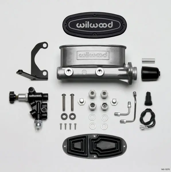 Wilwood has packaged the popular Aluminum Tandem Chamber Master Cylinder with the Combination Proportioning Valve, mounting bracket, fluid tubes and mounting hardware in a kit. Tandem Master Cylinder represents the latest in refinements in brake pressure actuation and fluid control. The slotted flange mounting makes it a simple bolt on for many OE mounts including the popular Chrysler, Corvette, GM, and Ford Mustang bolt patterns and is compatible with manual or power brake system applications. Master cylinders are available in four bores sizes, 7/8”, 15/16″, 1.00” or 1-1/8”, and three finishes, standard, ball burnished or black E-coat. The combination proportioning valve substantially simplifies wiring and brake proportioning adjustments on vehicles with custom brake systems. The combination block maintains full isolation between front and rear fluid circuits and is specifically designed to accompany the Tandem Chamber Master Cylinder. The combo valve and bracket are black E-coated for a performance look and long lasting durability. Stainless steel fluid tubes are precision bent with preinstalled plated steel tube nuts for a simple bolt-on installation between the Combination Proportioning Valve and the Wilwood Tandem Master Cylinder. Stainless steel button head fasteners thread into the bracket for a simple installation and years of durable, rust-free performance. Simply connect the fluid lines, bleed the system, and you’re finished.